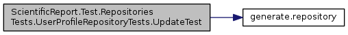 | void ScientificReport.Test.RepositoriesTests.UserProfileRepositoryTests.UpdateTest | ( | ) |